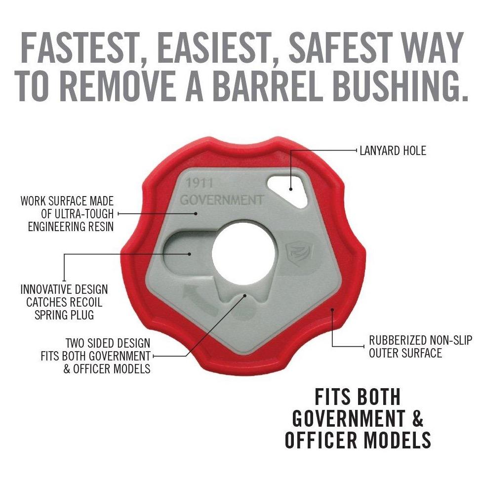 Fastest, Easiest, Safest Way to Remove a Barrel Bushing. Finally, a solution to the problem you’ve been dealing with for years. Removing the barrel bushing on your 1911 has never been easier. Press and turn. The ingenious design keeps the spring and plug corralled – and you out of the dentist’s chair.
